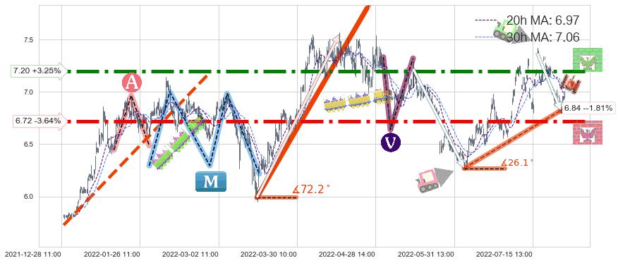 ♞ 20小时均线:6.97,30小时均线:7.06→ 快线<慢线