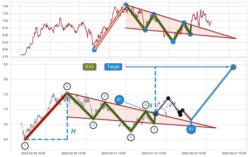 ➢ 06-14:14到达第❶价格目标位置6.78