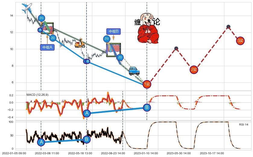 ➣ 缠论价格B点比A点低 ⤵,【RSI】指标B点比A点高 ⤴️