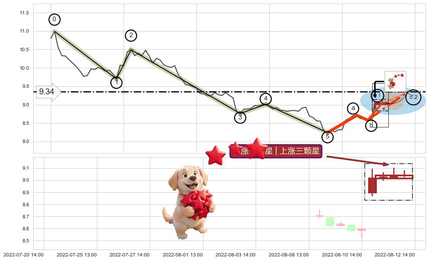 从2022-08-02 14:00至2022-08-12 14:00,共包含17个小时,阶段股价上涨9.45%,阶段股价变动位移路程比: 1 : 1.5