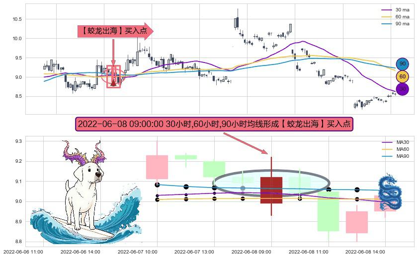 ⚀ 2022-06-08 09:00:00小时显现 30小时-60小时-90小时均线 【蛟龙出海】买入点 看多信号,后市看涨,买入