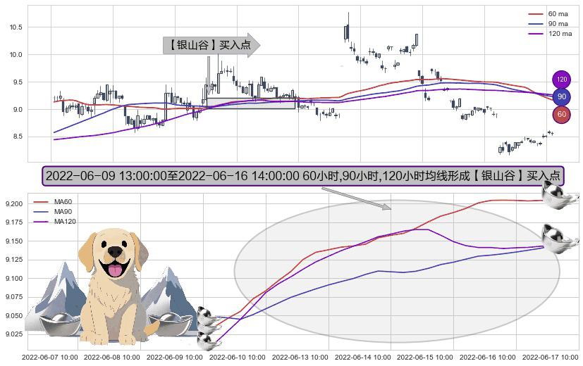 ⚀ 2022-06-09 14:00:00-小时至2022-06-16 14:00:00-小时显现 60小时-90小时-120小时均线 【银山谷】买入点 看多信号,后市看涨,买入