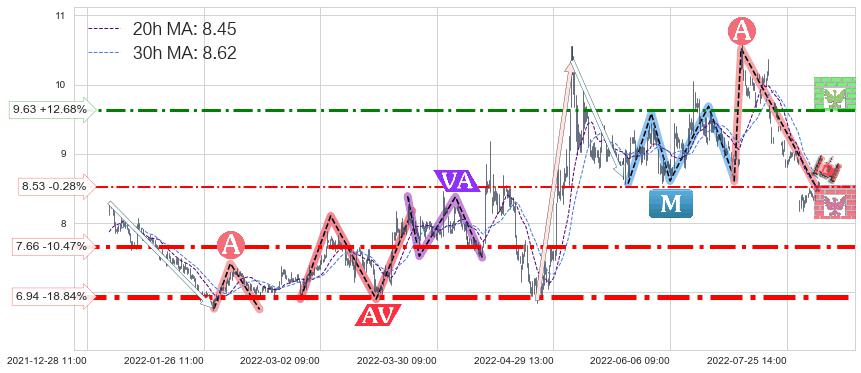 ♞ 20小时均线:8.45,30小时均线:8.62→ 快线<慢线