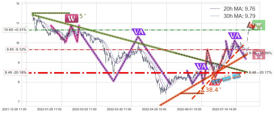 ♘ 支撑价格位9.65,可信任强度50.40%,距离最后交易2022-08-12 14:00形成的收盘价格10.62相差 -9.12%