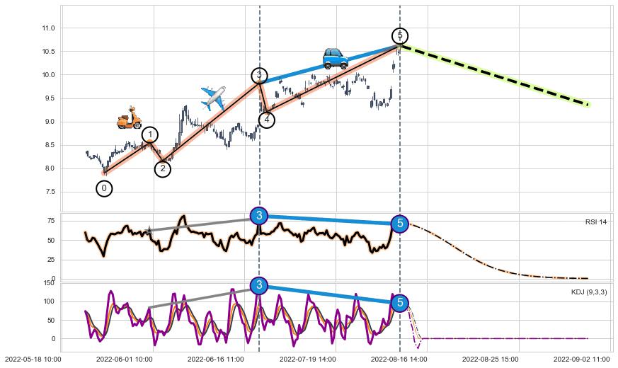 | 5 🅚:下跌螺旋桨 ➕ 🌊:波浪理论猜想上涨浪5已形成,猜想后续形成回调abc下跌(均值回复) ☞ 看空信号 ⇥ 【🅚线】交织【图形】⇥ 综合量化分数: 46 | > |