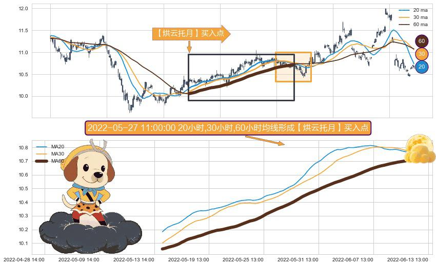 ⚀ 2022-05-16 11:00:00小时-2022-06-10 13:00:00小时显现 20小时-30小时-60小时均线 【烘云托月】买入点 看多信号,后市看涨,买入