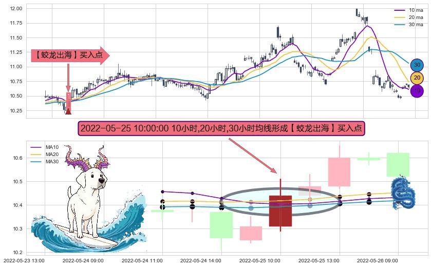 ⚀ 2022-05-25 10:00:00小时显现 10小时-20小时-30小时均线 【蛟龙出海】买入点 看多信号,后市看涨,买入