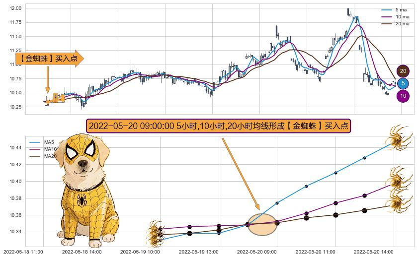 ⚀ 2022-05-20 09:00:00小时显现 5小时-10小时-20小时均线 【金蜘蛛】买入点 看多信号,后市看涨,买入