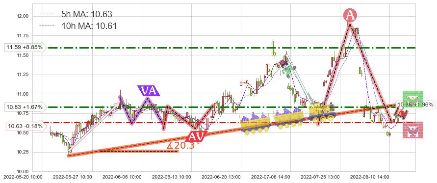 ♘ 阻力价格位10.83,可信任强度61.32%,距离最后交易2022-08-12 14:00形成的收盘价格10.65相差 +1.67%