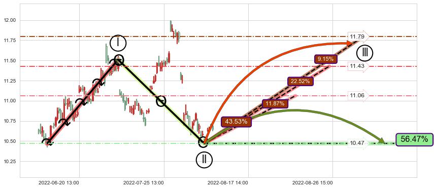 ➢ 循环浪继续向上【最低】位置(08-23:14, 11.06),匹配聚类样本比例27.26%, 可能性概率11.87%