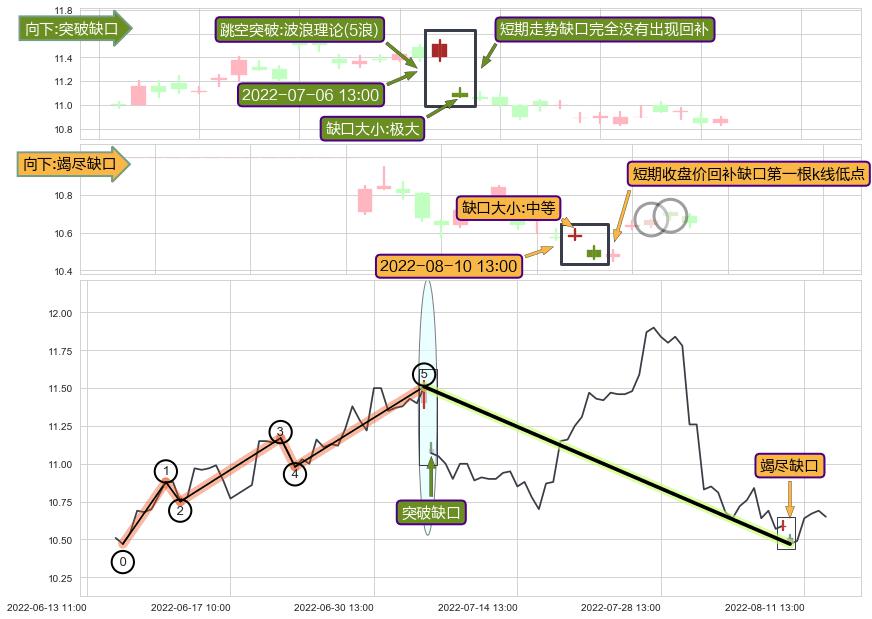 ➢ 2022-08-10 13:00形成:向下跳空【竭尽】缺口