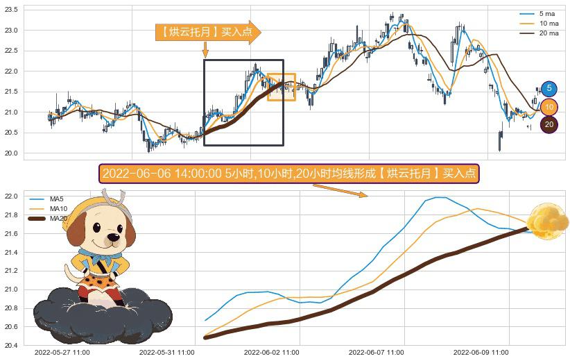 ⚀ 2022-05-31 13:00:00小时-2022-06-10 09:00:00小时显现 5小时-10小时-20小时均线 【烘云托月】买入点 看多信号,后市看涨,买入