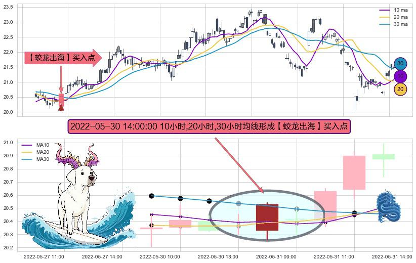 ⚀ 2022-05-30 14:00:00小时显现 10小时-20小时-30小时均线 【蛟龙出海】买入点 看多信号,后市看涨,买入