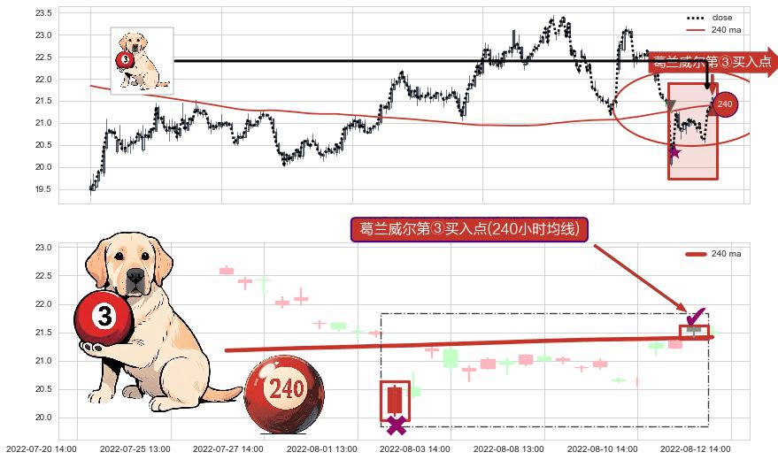 ⚀ 2022-08-12 13:00:00-小时显现 葛兰威尔均线 240小时均线 第③买入点 上升趋势的中继信号,后市看涨,买进信号