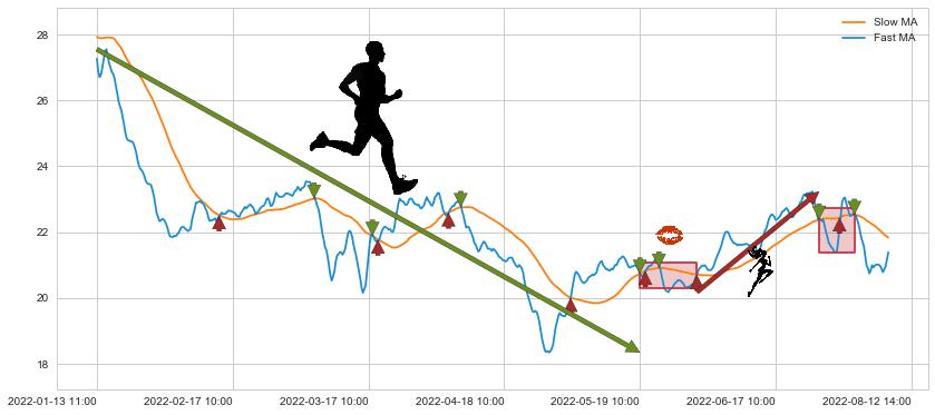 01-13 11:00至05-19 10:00 慢线与快线呈空头排列, 慢线与快线接触少,无缠绕