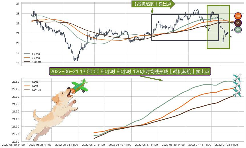 ⚀ 2022-06-02 14:00:00小时-2022-07-27 13:00:00小时显现 60小时-90小时-120小时均线 【战机起航】卖出点 看空信号,后市看跌,卖出