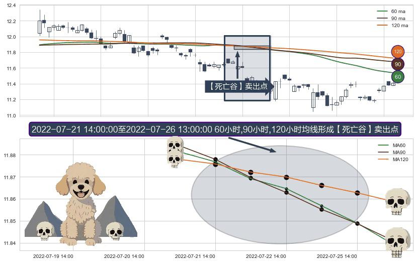 ⚀ 2022-07-22 13:00:00-小时至2022-07-26 13:00:00-小时显现 60小时-90小时-120小时均线 【死亡谷】卖出点 看空信号,后市看跌,卖出