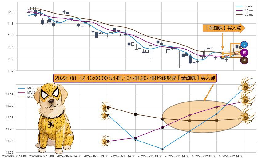 ⚀ 2022-08-12 13:00:00小时显现 5小时-10小时-20小时均线 【金蜘蛛】买入点 看多信号,后市看涨,买入