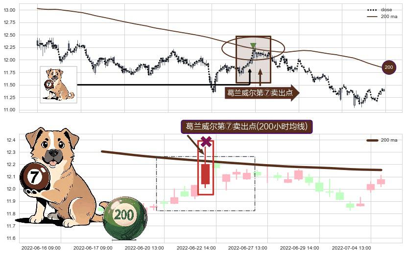 ⚀ 2022-06-22 13:00:00-小时显现 葛兰威尔均线 200小时均线 第⑦卖出点 下降趋势的中继信号,后市看跌,卖出信号