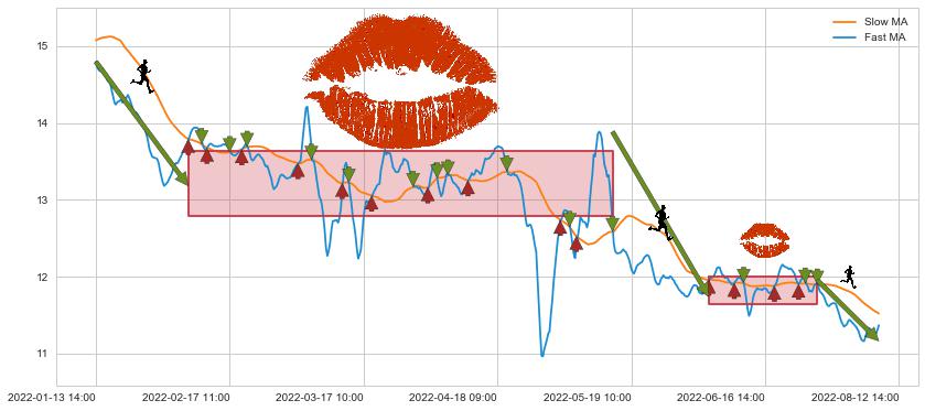 07-12 14:00至08-12 14:00 慢线与快线呈空头排列, 慢线与快线接触少,无缠绕