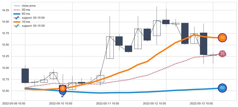⚃ 在破位点附近ma走势明显平稳迹象,稍后的走势中ma下垂迹象也出现,信号【可信度中等偏上】