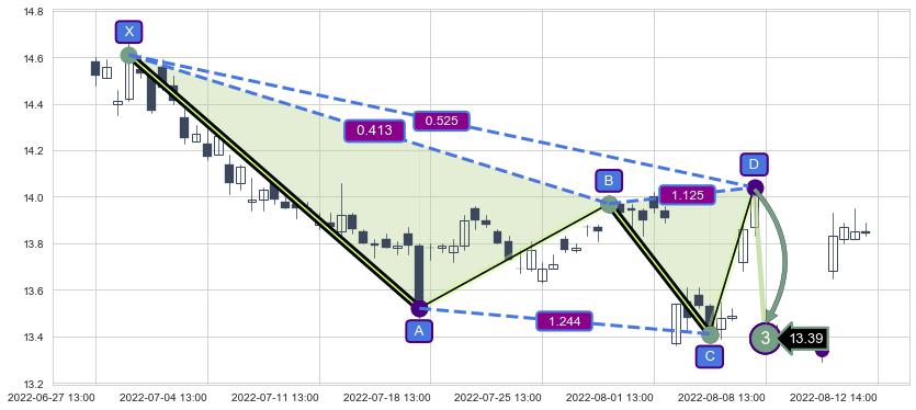 ➣ 已完成【赛福】形态起点X: 06-28:14, 终点D: 08-05:14, 共57交易小时