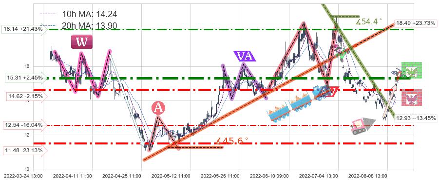 ♘ 阻力价格位18.14,可信任强度60.86%,距离最后交易2022-08-12 14:00形成的收盘价格14.94相差 +21.43%