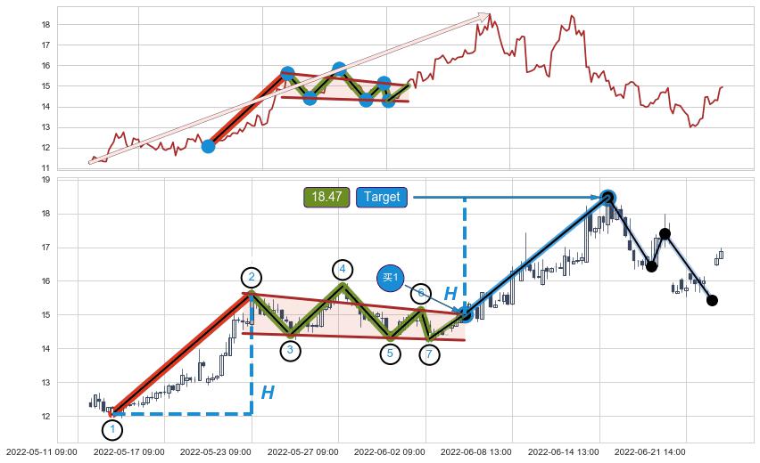 ➣ 最小中继整理涨幅→𝐇: 3.550 (𝐇旗杆的长度:旗杆起点→顶点)