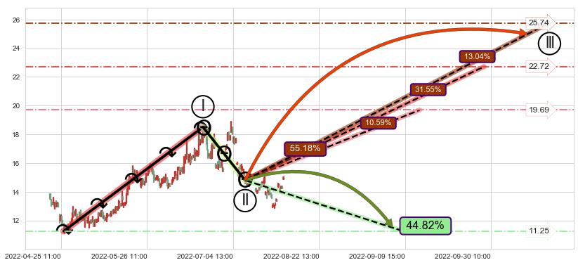 ♘ 阻力价格位15.31,可信任强度87.22%,距离最后交易2022-08-12 14:00形成的收盘价格14.94相差 +2.45%