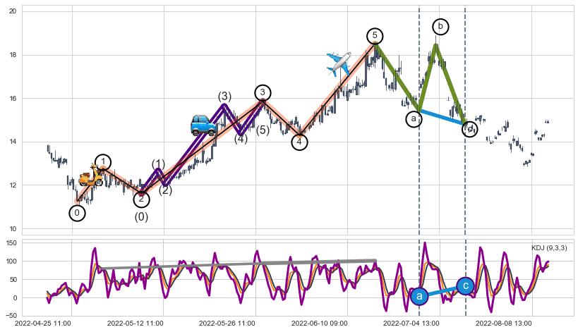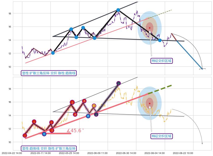 从2022-08-04 13:00至2022-08-12 14:00,共包含14个小时,阶段股价上涨14.41%,阶段股价变动位移路程比: 1 : 1.5