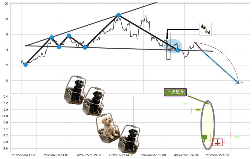 ➣ 【多空实力根本性转变→大方向抉择→空方占优】已在07-29:13突破【支撑】颈线 13.94
