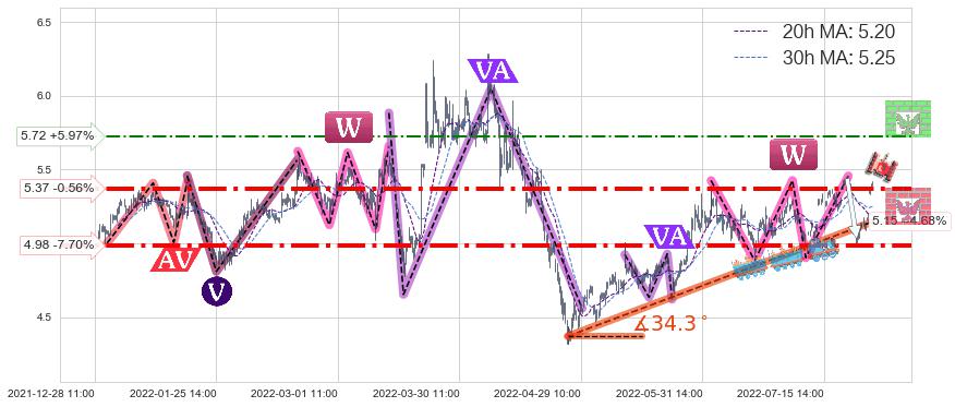 ➣ 【仅预测突破】最后价格:5.40与预测突破价格:4.97→【空间较大】后续最小【反转】第一目标价格→(08-22:11: 4.50 )