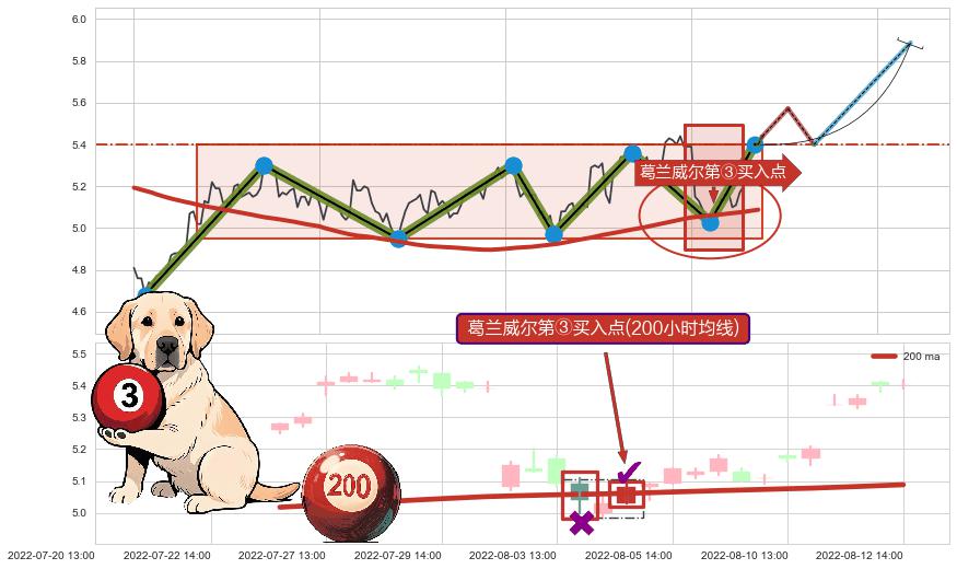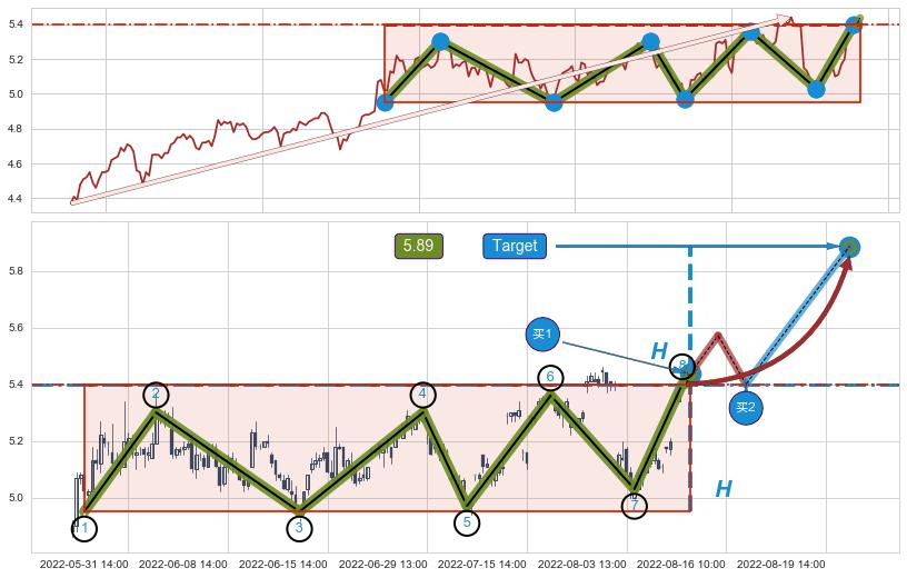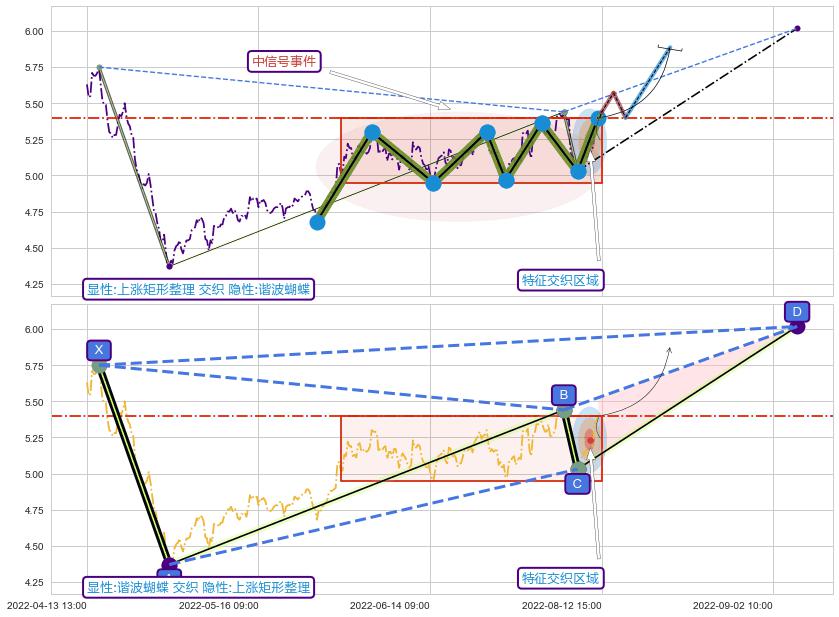 ➢ 【仅预测突破】最后价格:5.40与预测突破价格:5.44→【空间临近】后续最小【整理】第一目标价格→(08-22:13: 5.89 )
