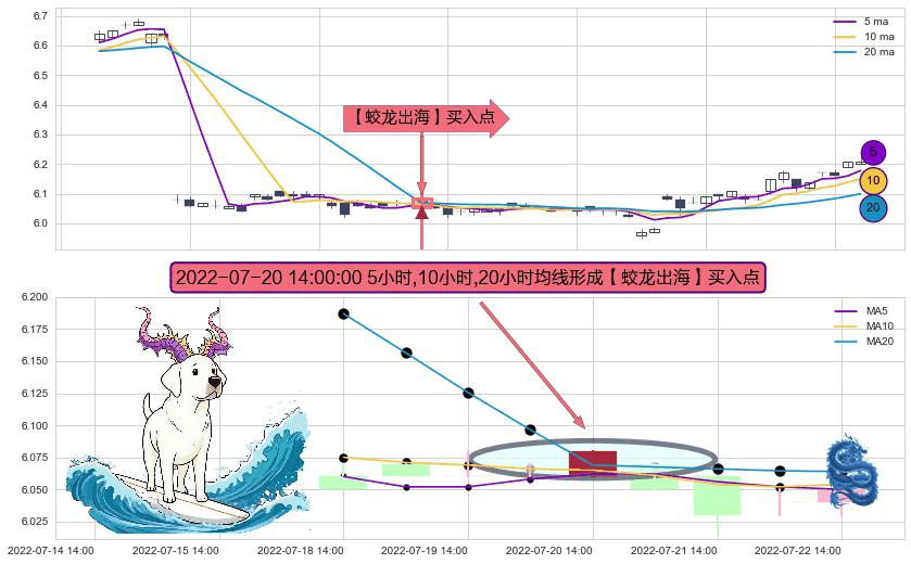 ⚀ 2022-07-20 14:00:00小时显现 5小时-10小时-20小时均线 【蛟龙出海】买入点 看多信号,后市看涨,买入