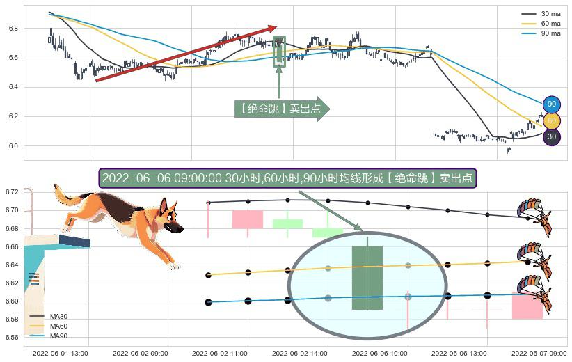 ⚀ 2022-06-06 09:00:00小时显现 30小时-60小时-90小时均线 【绝命跳】卖出点 看空信号,后市看跌,卖出