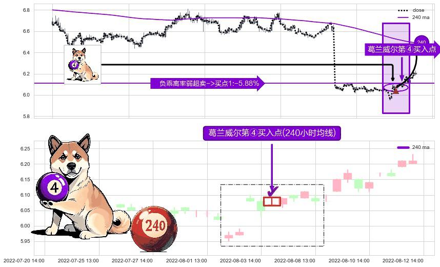⚀ 2022-08-04 13:00:00-小时显现 葛兰威尔均线 240小时均线 第④买入点 下降趋势均值回复的短线反弹信号,后市看涨,买进信号