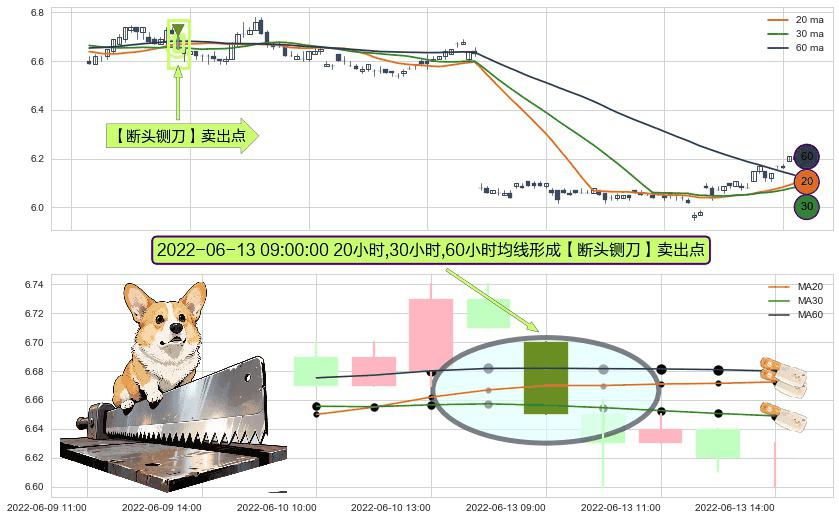 ⚀ 2022-06-13 09:00:00小时显现 20小时-30小时-60小时均线 【断头铡刀】卖出点 看空信号,后市看跌,卖出