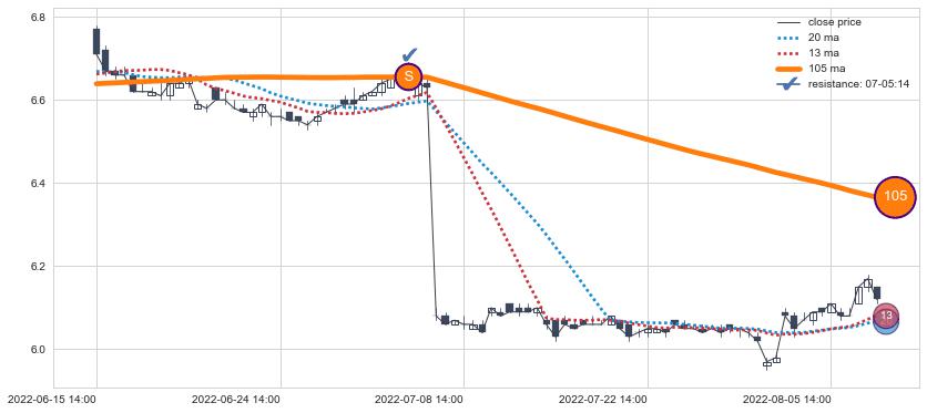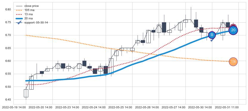 ⚂ 2022-07-20 14:00:00小时突然冒出一根大阳线,一下子顶穿三条均线且收盘价收在各条均线之上