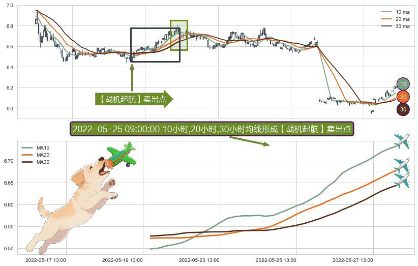 ⚀ 2022-05-19 14:00:00小时-2022-05-30 10:00:00小时显现 10小时-20小时-30小时均线 【战机起航】卖出点 看空信号,后市看跌,卖出