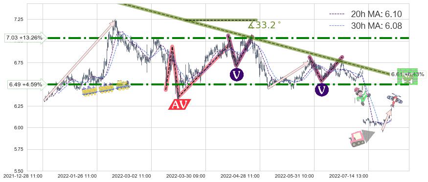 ♘ 阻力价格位6.49,可信任强度80.18%,距离最后交易2022-08-12 14:00形成的收盘价格6.21相差 +4.59%