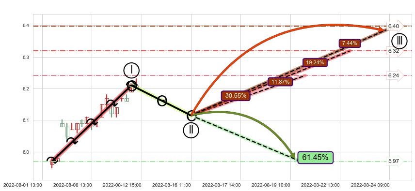➢ 循环浪继续向上【最低】位置(08-19:13, 6.24),匹配聚类样本比例30.78%, 可能性概率11.87%