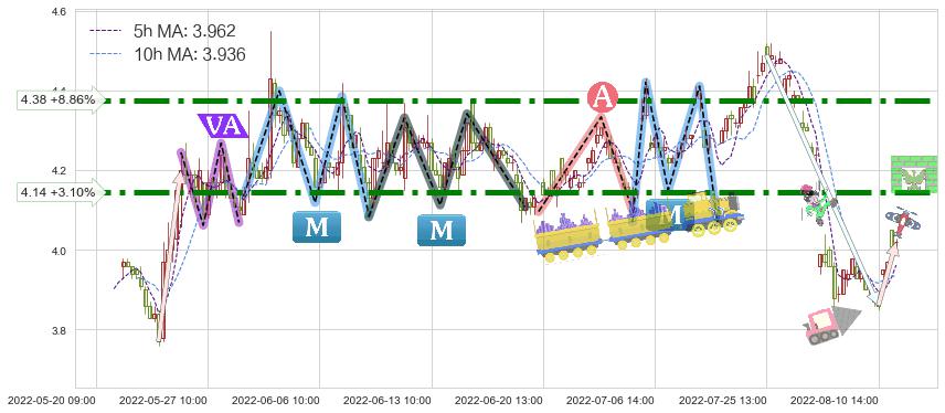 ♘ 阻力价格位4.38,可信任强度93.72%,距离最后交易2022-08-12 14:00形成的收盘价格4.02相差 +8.86%