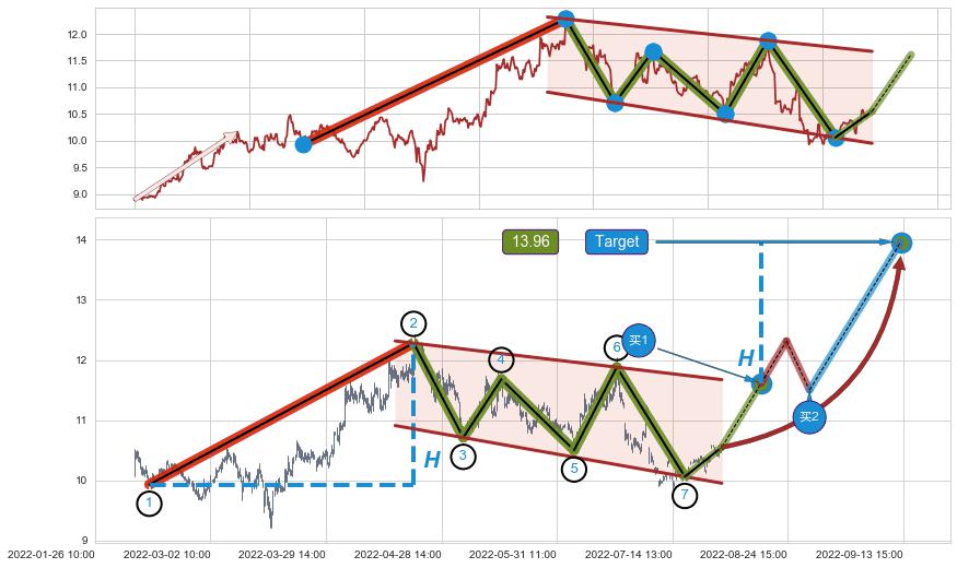 ➣ 最小中继整理涨幅→𝐇: 2.350 (𝐇旗杆的长度:旗杆起点→顶点)