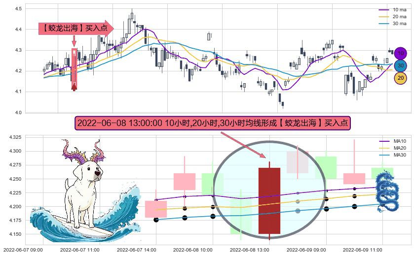 ⚀ 2022-06-08 13:00:00小时显现 10小时-20小时-30小时均线 【蛟龙出海】买入点 看多信号,后市看涨,买入