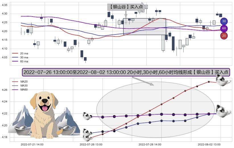 ⚀ 2022-07-26 14:00:00-小时至2022-08-02 13:00:00-小时显现 20小时-30小时-60小时均线 【银山谷】买入点 看多信号,后市看涨,买入