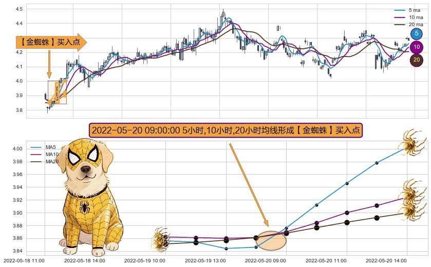 ⚀ 2022-05-20 09:00:00小时显现 5小时-10小时-20小时均线 【金蜘蛛】买入点 看多信号,后市看涨,买入