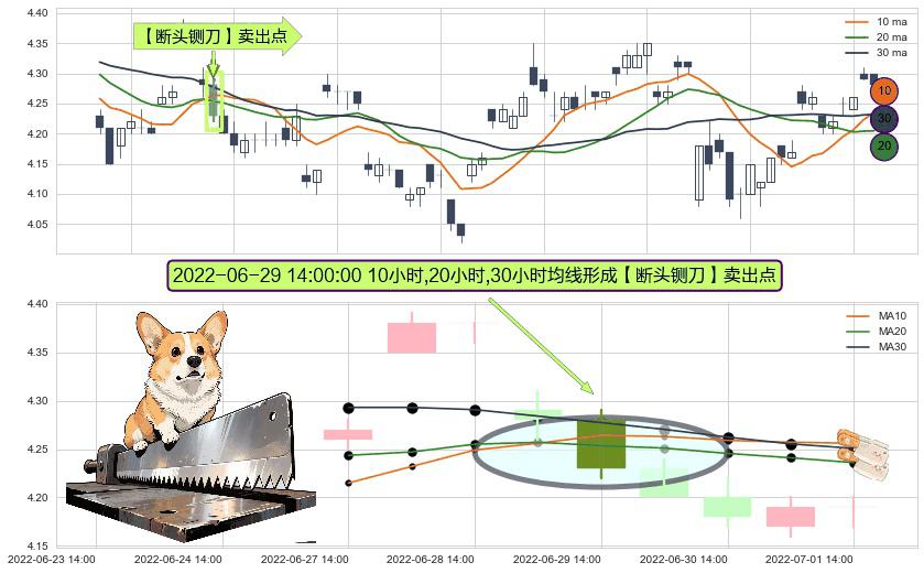 ⚀ 2022-06-29 14:00:00小时显现 10小时-20小时-30小时均线 【断头铡刀】卖出点 看空信号,后市看跌,卖出