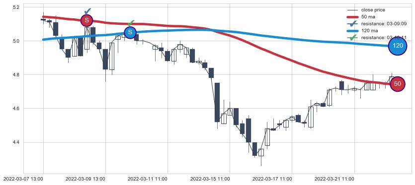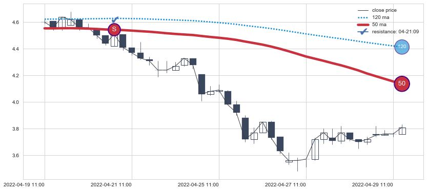 ⚀ 中期均线MA90下穿长期均线MA120形成的交叉是标准 死亡交叉