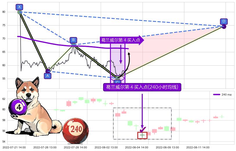 ➣ D点拟合预测价格74.57,距离最后交易收盘价格58.58相差 +27.29%