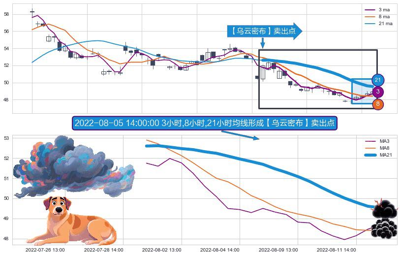 ⚀ 2022-07-29 14:00:00小时-2022-08-12 14:00:00小时显现 3小时-8小时-21小时均线 【乌云密布】卖出点 看空信号,后市看跌,卖出